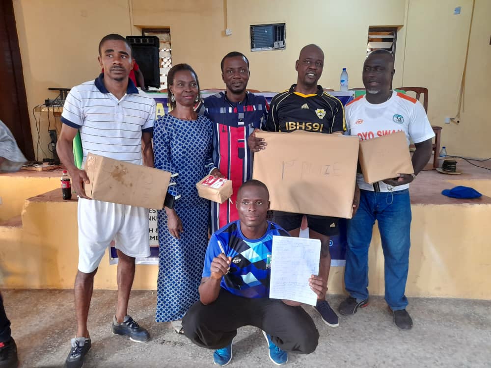 Also, the only female contestant in the table tennis competition, Mrs Yinka Bode Are was rewarded with a gift for her courage in daring to compete in the male dominated tournament.