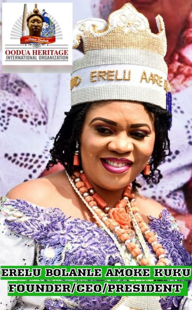 The founder of Oodua Heritage International Organization (OHIO), Erelu Bolanle Amoke Kuku has called on the descendants of O’odua all over the world to prioritize promotion of Yoruba culture, heritage and values.
