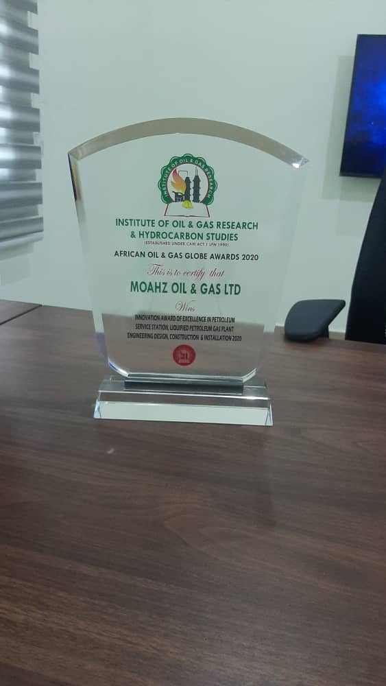 A multilateral research, not-for-profit educational institution, the Institute of Oil & Gas Research & Hydrocarbon Studies has presented Innovation Award of Excellence in Petroleum Service Station, Liquified Petroleum Gas Plant Engineering Design, Construction and Installation 2020 to Moahz Oil & Gas Limited in recognition of its contributions to the development of the sector across Nigeria.