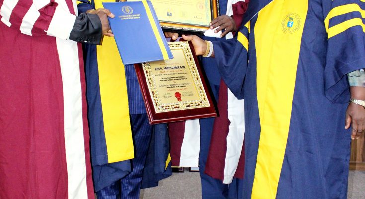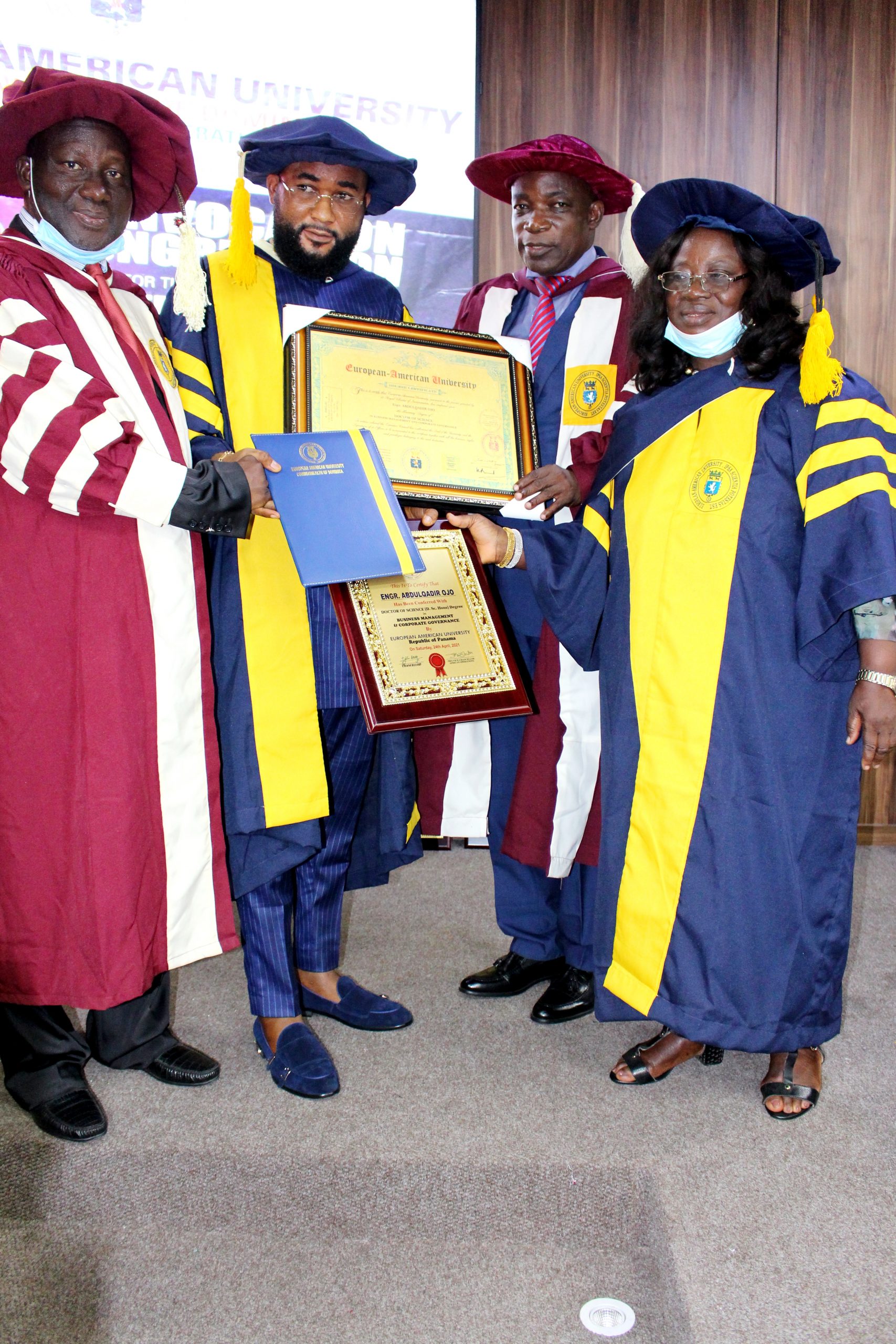 The European American University (EAU), Panama has conferred Honourary Doctorate Degree on a renowned expert in installation, construction and maintenance of equipment in the Oil & Gas Sector, Engineer Ojo Abdulqadir the Chief Executive of Moahz Oil & Gas Limited.