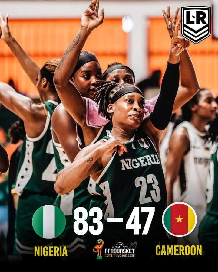 Nigeria’s senior women’s basketball team, D’Tigress, on Thursday night delivered a clinical performance to overpower Cameroon 83–47 and secure a place in the semifinals of the 2025 FIBA Women’s AfroBasket in Abidjan, Côte d’Ivoire.