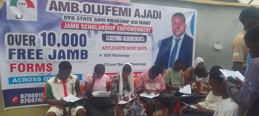 A Peoples Democratic Party (PDP) governorship aspirant in Oyo State, Ambassador Olufemi Ajadi Oguntoyinbo, has commenced the distribution of 10,000 free Joint Admissions and Matriculation Board (JAMB) forms across the state, beginning with over 200 beneficiaries in Lagelu Local Government Area.